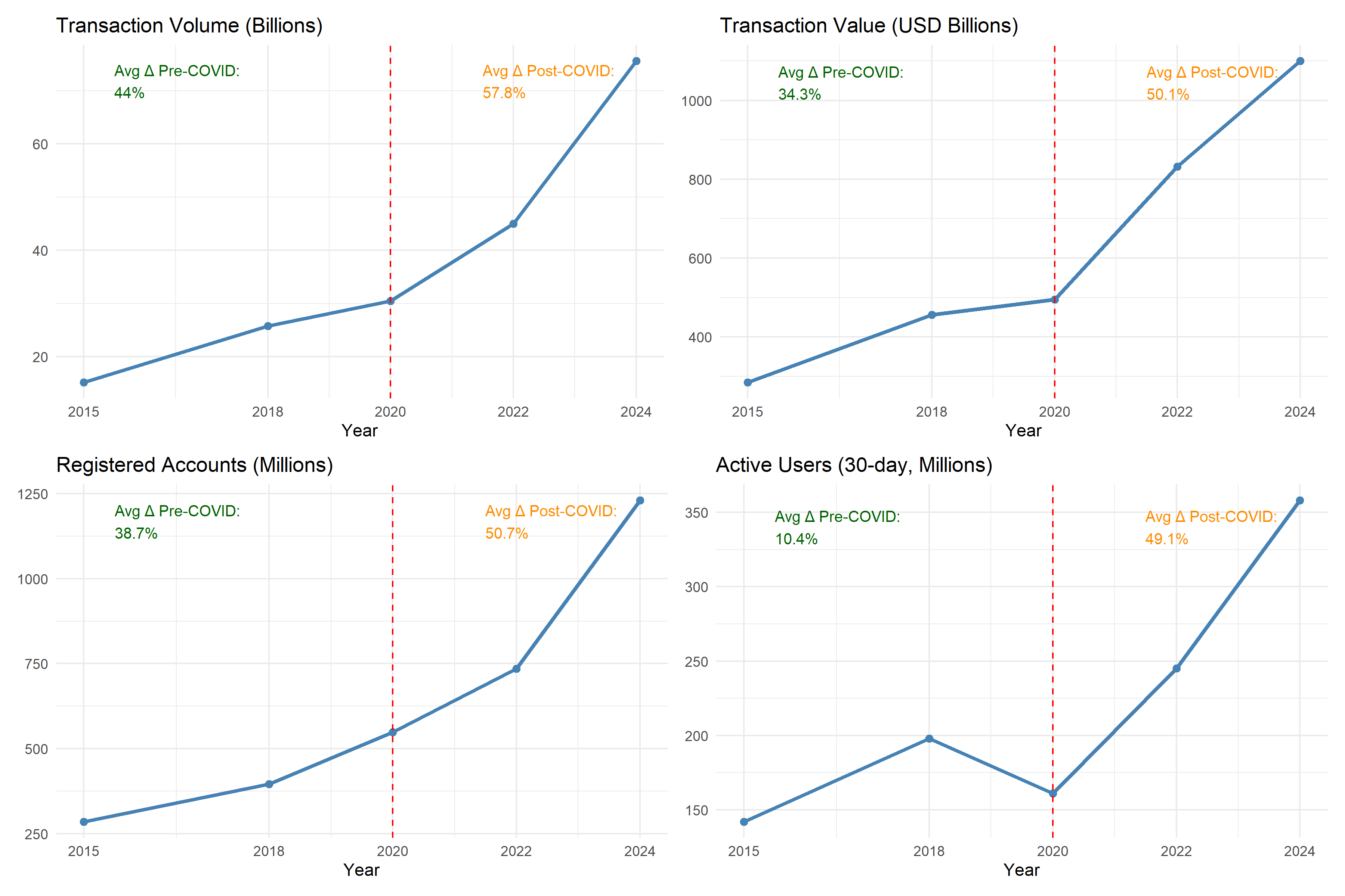 The evidence base of 605% transaction volume growth, 490% value growth, and 292% account growth since 2015 provides robust foundations for strategic policy formulation that can sustain and accelerate the leapfrogging trajectory through 2040.