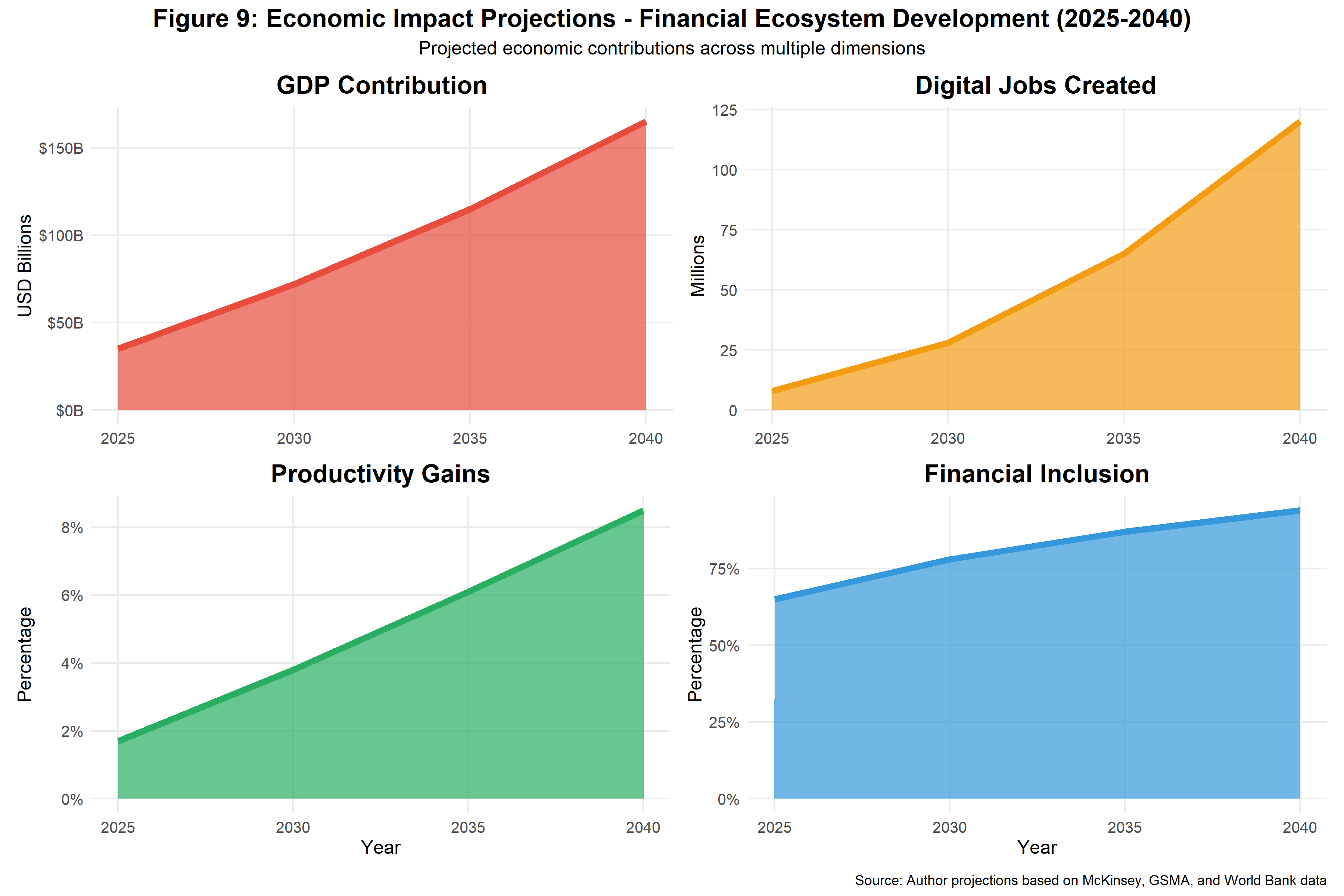 The projected trajectory toward intelligent financial ecosystems builds upon demonstrated African capacity for rapid technology adoption and innovation. McKinsey's projections of African fintech revenues reaching $47 billion by 2028 and mobile money market growth to $3.93 billion by 2033 reflect achievable targets given current adoption rates, verified growth patterns, and investment flows. The demographic dividend of 1.1 billion working-age Africans by 2040, combined with the continent's 50% share of global mobile money services, provides human capital and technological foundations necessary for ecosystem development.